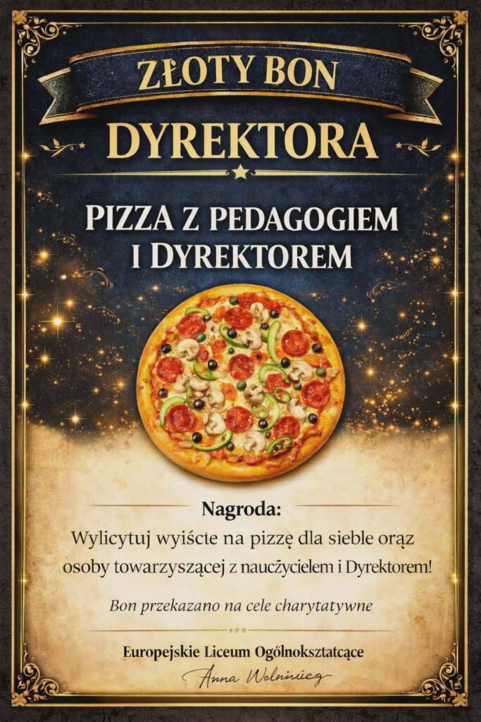 Podczas wydarzenia uczniowie licytowali specjalne bony przygotowane przez Dyrekcję oraz Nauczycieli. Dzięki ogromnemu zaangażowaniu i chęci pomocy udało się zebrać środki, za które zostanie zakupiona karma dla Schroniska dla Bezdomnych Zwierząt.