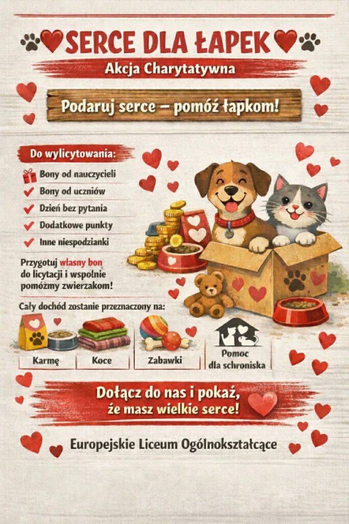 W naszym liceum odbyła się wyjątkowa akcja charytatywna „Serce dla Łapek” która pokazała, jak wielkie serca mają nasi uczniowie.